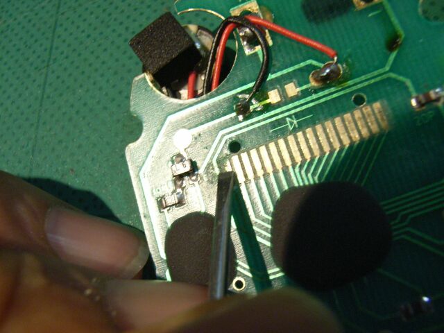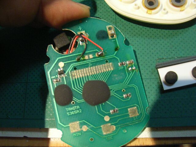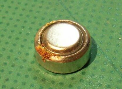 よく見ると、電池(LR44)の液漏れで腐食した形跡があります。