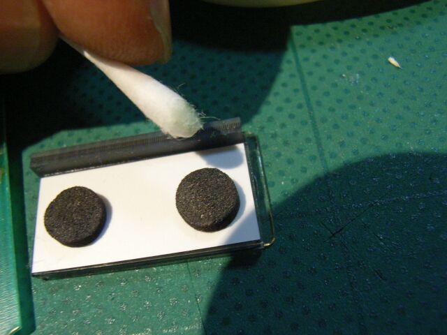 (綿を残さないよう、最後に粘着テープを当てて埃(ほこり)を取り去ります。)