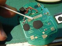 基板の反対側の電極(ゼブラゴム、カーボンゴム様整列電極)もアルコールで清掃します。 |